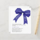 Um fundo branco elegante, decorado com grande arco azul escuro. Personalize e adicione um nome e detalhes da parte. Texto: Algo azul antes de mim. 1 folha = 1 convite impresso borda a borda.