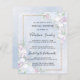 As orquídeas brancas criam arranjos florais elegantes e decoram uma fina estrutura de ouro. Uma lavagem com aquarela azul macia fornece o fundo.