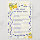 Torne o tema principal do seu chá de panela de aperto extra divertido com este Chá de panela Personalizado Blue Lemon que conhece o melhor jogo da noiva! Com um novo design de limão, este jogo é perfeito para uma celebração principal de limão chá de panela. Uma adição de excelente ao tema do chá de panela de limão, adiciona risos e entusiasmos ao seu evento. Ideal para ideias de chá de panela com tema limão, este jogo também ajustado ideias de chá de panela com tema italiano limão e ideias de chá de panela de verão!