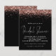 Um valor para o alternativo do ORÇAMENTO em tamanho menor de 4,5 x 5,6" de semirbrilho de 110 lbs, que é de espessura semelhante a um cartão postal (no entanto, não é adequado para uso como cartão postal). POR FAVOR, OBSERVE QUE HÁ UM convite por folha. Rosa de orçamento Dourado Chá de panela brilhante Convite Preto para . Estilo Glam e glitz com uma borda falsa de brilho no topo de ambos os lados e cabeçalho de ocasião em um script informal definido em um plano de fundo preto clássico. Personalize facilmente o resto do texto para seus próprios detalhes.