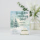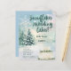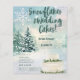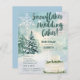 Belo e encantador chá de panela de inverno com uma escrita manual moderna, flocos de neve, bolo de casamento, vergreens e neve em tons de lacre, azul legal e branco. Disponível como download digital ou impresso. Design por LeahG de budgetweddinginvites.com
