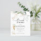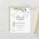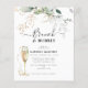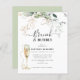 Beleza e diversão com este convite de almoço de champanhe de Chá de panela bravo e espumante desenhado com galhos suaves de eucalipto, folhas de ouro douradas, e um pequeno pano de fundo verde na parte de trás da carta. Personalize facilmente com o nome da noiva e outras informações importantes.