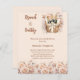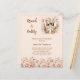 Um convite moderno, na moda e glamouroso para um Chá de panela de bolinho. Creme, fundo colorido de pêssego, decorado com uma cesta de flautas, frascos de vinho espumante e beige, flores coloridas de creme. Personalize e adicione os detalhes da sua festa. 1 folha = 1 convite impresso de borda a borda.