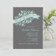 Com um bonito estilo floral, este Convite de festas de chá é feminino e adorável. Uma bela faixa fluente é enfeitada com flores estilizadas de tetos e tartarugas, bagas, botões e verde e colocada sobre um fundo de cinzas de pomba macia. Um design fabuloso para uma festa de chá contemporânea em honra da futura noiva no esquema de cores da turquesa e da cinza.