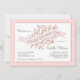 Com um bonito estilo floral, este Convite de festas de chá é feminino e adorável. Uma bela faixa fluindo no centro é adorada com flores rosa estilizadas e verde e o fundo é de duas tonalidades de listras rosa macia. Um design fabuloso para uma festa de chá contemporânea em honra da futura noiva.