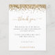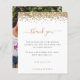 Chá de panela De Foto Glitter Dourado De Orçamento Obrigado. Um alternativo de 4,5 pol x 5,6 pol com preço inferior. Disponível em um STOCK DE CARTÃO SEMI-GLOSS 110 lb, que é a opção padrão (mais espesso para convites), OU um STOCK de PAPEL THINNER FINISH 80 lb FINISH (ideal para gabinetes). Os envelopes são um extra opcional e são ligeiramente maiores que o tamanho da placa. Uma borda falsa de ouro está no topo, e Obrigado está em um roteiro elegante. Personalize facilmente o texto para seus próprios detalhes. Na parte de trás troque sua foto favorita do seu chá de orientação para retratos.