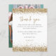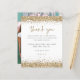Dourado Chá de panela De Fotografias De Script Glitter Obrigado. Um alternativo de 4,5 pol x 5,6 pol com preço inferior. Disponível em um STOCK DE CARTÃO SEMI-GLOSS 110 lb, que é a opção padrão (mais espesso para convites), OU um STOCK de PAPEL THINNER FINISH 80 lb FINISH (ideal para gabinetes). Os envelopes são um extra opcional e são ligeiramente maiores que o tamanho da placa. As bordas da falsa brilha do ouro estão no topo e no fundo na frente, e Obrigado está em um script de escrita manual definido na coordenação do ouro. Personalize facilmente o resto do texto. Na parte de trás, substitua a amostra;pic pelo seu próprio favorito em seu evento. Você também pode alterar as cores do texto e do plano de fundo por meio da opção personalizar mais, se desejar.