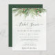 Belos convites de chá de panela de barato com ilustrações botânicas a aquarela pintadas à mão de áreas verdes de inverno, pinheiro e espadilha, cones e bagas sagradas. Escolha perfeita para casamentos temáticos de inverno ou Natal.