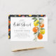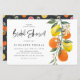 Convide familiares e amigos para o seu evento com este chá de panela botânico. Apresenta uma terra de cor d'água de laranjas, limões, flores de laranja e verde com um padrão de citros correspondente. Personalize adicionando um nome, data, hora, local, endereço e outros detalhes do evento. Este convite cítrico é perfeito para chás de panela de verão. Itens correspondentes estão disponíveis.