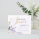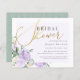 Chá de panela elegante com um roteiro falso de folha de ouro contra uma camada fina de roxo/lavanda com lindas coloração d'água e rosas em tons de creme roxo leve. Seus detalhes são mostrados com na moda de tipografia simples. Como parte da seleção do orçamento aqui no Zazzle, esses convites vêm em tamanhos limitados e estoques de papel. Se você precisar de um tamanho ou estoque de papel diferente, esse design pode ser transferido para um formato padrão 5x7 usando a ferramenta de transferência design para obter mais opções.