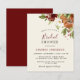 O Chá de panela Floral do outono de Maroon apresenta uma fronteira de topo de marsala, flores laranja escuras e rosa branca, com verde botânico e folhagem exuberantes, galhos arrojados no fundo do marfim. O reverso do convite para o casamento é Maroon. Personalize com os detalhes do seu chá de panela no tradicional roteiro gravado à mão e em letra serif tradicional. Perfeito para uma festa de outono. Observe que os envelopes NÃO estão incluídos neste design. Se precisar de envelopes, verifique nossa coleção ou adquira-os separadamente do mercado.