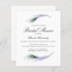 Convites de chá de panela Pavões Roxos. Um chá de panela simples e divertido criado com lindas penas pavão roxo e lacrimogêneas com textura aquosa. Personalize este chá de panela com suas informações e qualquer mensagem personalizada que você queira incluir.
