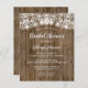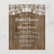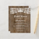 Chá de panela de madeira de celeiro russo com aparas brancas. Uma bela ilustração do espaço branco borda o topo do cartão, com as palavras "Chá de panela" e o nome da noiva no moderno estilo caligráfico branco. Correspondência de madeira de celeiro ao contrário.