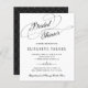 Chá de panela elegante de barato preto e branco com orçamento apresentando um clássico roteiro de tipografia manuscrito com espirais e um padrão de diamante geométrico no sentido inverso. +++++++++++++ Adequado para gravata negra formal, festas de noivas internas. ++++++++++++++ OBSERVAM que a cor de fundo na frente e atrás é editável. Você pode alterá-las com a paleta de cores do casamento depois de selecionar a opção PERSONALIZAR. +++++++++ LEIA ISTO ANTES DE COMPRAR! Este é um cartão de casamento de barato orçamentário impresso em uma folha de papel (cada folha tem um cartão). +++ Para obter a melhor qualidade de preço, nosso conselho é escolher o tipo de papel Semi-Gloss (é espesso o suficiente para ser usado para papelaria) +++ Se você precisar de envelopes, escolha a OPÇÃO ENVELOPE. ++ Verifique duas vezes todas as informações e a ortografia do seu texto porque você receberá exatamente o que você vê - ninguém mais verificará nada antes de imprimir. +++ Esta placa foi projetada para o tamanho de 4,5" x 5,6". Caso você escolha outro tamanho do cartão e o texto saia da página, tudo precisa ser corrigido antes de adicionar o produto ao carrinho. Peça ajuda ao Serviço de Design ao Vivo.