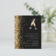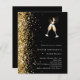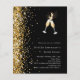 Para um Chá de panela. Um fundo negro. Decorado com uma fina brilha de ouro e um par de flautas. Personalize e adicione um nome e detalhes da parte. 1 folha = 1 convite impresso de borda a borda.