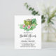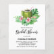 Chá de panela tropical e festivo. Apresenta coco de aquarela, hibisco rosa, plumeria e verde tropical. Este convite de coco é perfeito para chás de panela tropicais e de luau. Personalize adicionando seus detalhes.