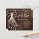 Diamantes brancos e brilhantes vestido de noiva em um fundo de madeira marrom-escura com cordas de luzes brilhantes fazer um moderno e elegante chá de panela inspirado pelos russos. ++++++++++++ LEIA ISTO ANTES DE COMPRAR! Este é um cartão de barato de orçamento impresso em uma folha de papel (cada folha tem um cartão). +++ Para obter a melhor qualidade de preço, nosso conselho é escolher o tipo de papel Semi-Gloss (é espesso o suficiente para ser usado para papelaria) +++ Se você precisar de envelopes, escolha a OPÇÃO ENVELOPE. ++ Verifique duas vezes todas as informações e a ortografia do seu texto porque você receberá exatamente o que você vê - ninguém mais verificará nada antes de imprimir. +++ Esta placa foi projetada para o tamanho de 4,5" x 5,6". Caso você escolha outro tamanho do cartão e o texto saia da página, tudo precisa ser corrigido antes de adicionar o produto ao carrinho. Peça ajuda ao Serviço de Design ao Vivo.
