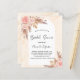 Para um chá de panela moderno. Um quadro de arco e impressão de mármore dourado rosa como fundo. Decorados com ouro rosa e flores, rosas e erva-pampas cor-de-rosa. Personalize e adicione um nome e detalhes.