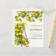 Um fundo cor-de-laranja-água. Decorados com limões de cor aquosa e uma escada. Personalize e adicione um nome e detalhes da parte. 1 folha = 1 convite impresso de borda a borda.