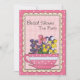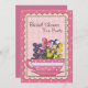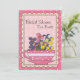 convite de festas de chá de chá de panela feito em uma bolinhas rosa bonito, na frente externa e uma xícara colorida de flores pansy. O texto no fundo cor-de-rosa sólido está pronto para personalizar para ler o que quiser. Adorável convite para a noiva ser amada.