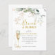 Beleza e diversão com este convite para o almoço de champanhe brunch e Chá de panela borbulhante desenhado com galhos suaves de eucalipto e folhas de ouro douradas. Personalize facilmente com o nome da noiva e outras informações importantes.