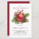 Convide convidados para o seu evento com este chá de panela de inverno personalizável. Apresenta um ornamento de árvore de Natal vermelha, bagas de inverno e pinecones. Personalize adicionando seus detalhes. Este chá de panela de férias é perfeito para chás de panela de inverno.