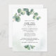 Chá de panela Verde Eucalyptus Watercolor Cartão de Convite com um fundo embutido e uma tipografia de tendência. Uma escolha excelente para um chá de casamento botânico. Personalize o modelo de texto fácil de usar com os detalhes do evento do chá clicando no botão "Personalizar" acima. Enquanto o texto "Bebê" estiver definido, o resto do texto a preto pode ser alterado para se adequar ao evento