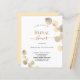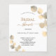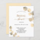 Um fundo branco decorado com ouros de eucalipto. Personalize e o nome da noiva a ser e os detalhes da festa. Letras pretas e ouros coloridas. Fundo: fundo colorido do ouro.