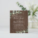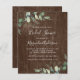 Convide amigos e familiares a honrarem a noiva a ser com este Chá de panela barato com folhas de cor d'água eucalipto contra fundo de madeira. Observe que nosso intervalo de convites orçamentários não inclui envelopes. Você pode pedir separadamente através de nossa loja, ou de sua loja de suprimentos favorita.