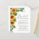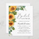 Este chá de panela rústico amigável apresenta buquês de aquarela de girassol floral alegre e eucalipto verde e roteiros elegantes de caligrafia.