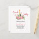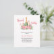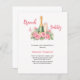 Um convite moderno, na moda e glamouroso para um Chá de panela de bolinho. Um fundo de cor branca com rosas cor-de-rosa, um frasco de vinho espumante e uma flauta. Personalize e adicione os detalhes da sua festa. 1 folha = 1 convite impresso de borda a borda.