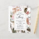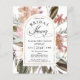 Este chá de panela maravilhosamente feminino e único no estilo "boho" tem uma sumptuosa paleta de cores neutras em bege, verde, pêssego e tons de rosa e terracota. Os adoráveis elementos florais de aquarela têm um apelo orgânico inspirado na natureza. Um belo quadro arqueado com sotaque dourado adiciona elegância ao design. A parte de trás do convite tem um belo buquê floral em cascata de um canto superior. Personalize o modelo de texto com os detalhes do evento.