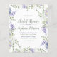 Este chá de panela apresenta um quadro floral com flores de wisteria de cor d'água roxa e folhagem verde. A tipografia de tendências mistura fontes escritas à mão e serif. Como parte da seleção do orçamento aqui no Zazzle, esses convites vêm em tamanhos limitados e estoques de papel. Se você precisar de um tamanho ou estoque de papel diferente, esse design pode ser transferido para um formato padrão 5x7 usando a ferramenta de transferência design para obter mais opções.