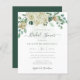 Um elegante chá de panela floral com rosas de aquarela e folhas de eucalipto com caligrafia moderna manuscrita.