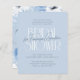 Um convite orçamentário azul empoeirado para chá de panela com tipografia ousada e escrita manual. A frente da placa apresenta um fundo azul claro, com "Chá de panela" escrito em tipografia branca inspirada em deco. O nome da futura noiva está escrito na caligrafia moderna chic sobre ele. Acima e abaixo, os detalhes do evento aparecem na elegante tipografia formal da serifpografia. As cartas invertem para um padrão floral de aquarela. Como parte da seleção orçamentária no Zazzle, esta folha não é um tamanho de convite padrão ou qualidade de papel. Se quiser que este design num cartão de convite o encontre na coleção ou utilize o Zazzle Make Machine para o transferir para o produto da sua escolha. Visualize a coleção vinculada nesta página para itens correspondentes ou visite nossa loja para obter mais designs de chá de panela!