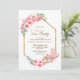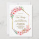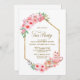 Celebre o entusiasmo do seu noivado recente e convide seus amigos e entes queridos para uma festa de chá com este elegante chá de panela floral cor-de-rosa com estrutura geométrica de ouro.