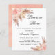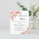 Para um chá de panela moderno estilo boho. Um fundo branco na moda. Decorados com ouro rosa e flores, rosas e erva-pampas cor-de-rosa. Personalize e adicione um nome e detalhes da parte. Texto: O amor está em Bloom. 1 folha = 1 convite impresso de borda a borda.