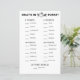 Torne a sua chá de panela ou festa de solteira ainda mais excitante com este jogo "O que tem na sua bolsa?"! Esta atividade divertida e interativa desafia os hóspedes a verificar suas bolsas para itens do dia a dia (e surpreendentes!) para ganhar pontos. Perfeito por quebrar o gelo e fazer todo mundo rir! Recursos 🌟: ✔️ Envolvendo e Diversão - Uma forma excelente de entreter convidados em casamentos, chás de panela e eventos noturnos de meninas. ✔️ Elegante Design - Na moda design preto e branco com sotaque de anel de diamante chic. ✔️ Impressão de alta qualidade - Projetado profissionalmente para facilitar a leitura e a sensação premium. ✔️ Personalizável - Personalize-o com nomes, datas ou detalhes especiais para corresponder ao seu tema de evento. Coleção de Correspondência ✔️ Disponível - Verifique nossa coleção para coordenar jogos de chá de panela e decoração! Como Jogar: Cada convidado passa por sua bolsa e faz o check-off de itens da lista. Adicione os pontos com base no que é dentro. O convidado com o maior resultado ganha um prêmio! 🎉 Perfeito para: ✔️ Chás de panela ✔️ Festas de solteira ✔️ Celebrações de Casamento ✔️ Noite das Senhoras 💖 tornar isso seu! Personalize o texto ou os detalhes para ajustado de sua celebração exclusiva.