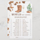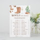 Este design apresenta cores neutras modernas em uma aplicação de aquarela. Design em impressão de vaca, copo de champanhe, cacto do deserto, botas de cowboy.