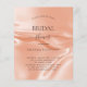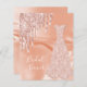 Chá de panela elegante, clássico, glamouroso e feminino. Um vestido de ouro de rosa com um pingado de ouro falso rosa. Rosa dourado, fundo de cetim. Com o texto: Chá de panela na frente escrito com um moderno script de estilo escrito à mão, branco e escrito. Adicione os detalhes do evento no verso.