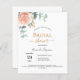 Um fundo branco chic. Decorados com ouro-rosa e folhas de eucalipto cor-de-rosa-esbranquiçada, floral, rosa e alveolado, galhos, verde-verde e ouro falso. Personalize e adicione o nome da noiva a ser e os detalhes da festa. Letras pretas e ouros coloridas. 1 folha = 1 convite impresso de borda a borda.