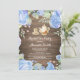 Chá de panela Russo, Convite de festas de chá. Flor Floral Azul De Cores Aquáticas. Convite para Chá de chá de noiva. Rosa chique. Vintage. Retro. Fundo Rustic Wood. Para mais personalização, clique no botão "Personalizar" e use nossa ferramenta de design para modificar este modelo.