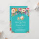 Chá de panela Convite de festas de chá. Flor Floral Cor-de-Água Rosa. Convite Para Chá De Chá. Rosa Chique. Vintage.Retrô. Fundo do Teal Turquoise Aqua.