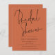Um valor para o alternativo do ORÇAMENTO em tamanho menor de 4,5 x 5,6" de semirbrilho de 110 lbs, que é de espessura semelhante a um cartão postal (no entanto, não é adequado para uso como cartão postal). POR FAVOR, OBSERVE QUE HÁ UM convite por folha. Chá de panela Terracotta de Script Orçamentário Este design em terracotta moderno para os seus Chás de panela Invitos definiu um roteiro elegante para o Chá de panela no topo e personaliza facilmente com seus detalhes abaixo. Você também pode alterar as cores do texto e do plano de fundo em ambos os lados, se desejar através da opção Personalizar mais.