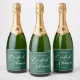 Uma etiqueta elegante de garrafa de champanhe verde-esmeralda para uma festa de floresta ao ar livre. Personalize este favor bonito com o nome da noiva na tipografia minimalista branca-chic.