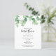 Orçamento Sábio verde eucalipto chá de panela botânico de folha do eucalipto convite. Design moderno e chic.