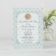 Chá de panela chic feito em um aqua vintage shabby e cor damasco floral branca. Uma antiga área de texto semitransparente, com estrutura branca, é decorada, no topo, com gráficos de um pote de chá. Personalize todo o texto para se adequar ao seu evento de festa de chá. O convite adorável que a noiva vai acalmar.