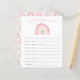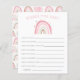 O chá de fraldas de uma garota com o tema do arco-íris bonito deseja um cartão de bebê com ilustração do arco-íris rosa pastel. Os textos são editáveis. Atividade perfeita para jogar durante o chá e definitivamente será um excelente!