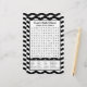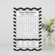 Este jogo de busca de palavras de chá de festas noivas vai com qualquer cor ou tema, já que é preto e branco clássico. O design preto e branco apresenta um impressão chevron zigzag em segundo plano para o jogo de busca de palavras. O jogo tem todas as palavras de casamento para torná-lo mais divertido e você pode colocar o nome da noiva no topo. Direitos autorais