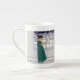 Vindo para dentro para o chá! Uma rapariga leva um bule e copos em uma bandeja na frente de uma janela que mostra uma tempestade de neve fora. A menina é adaptada de um anúncio 1921 para o máximo de Produits.